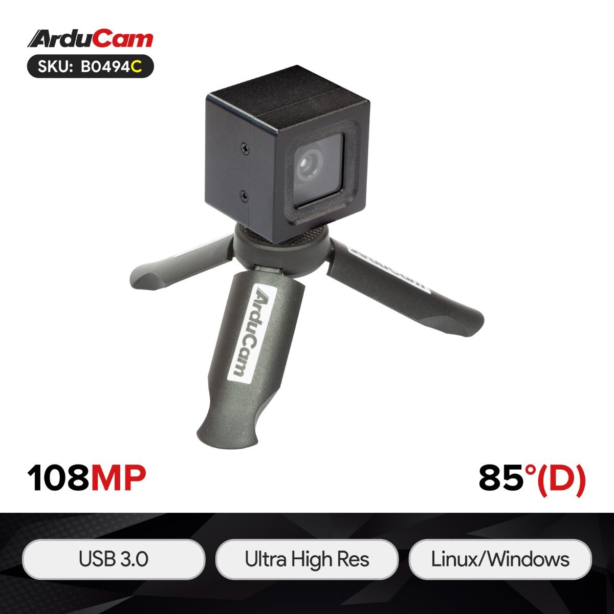 - 1 x Arducam 108MP USB3 Camera with Back Cover and Tripod Adapter