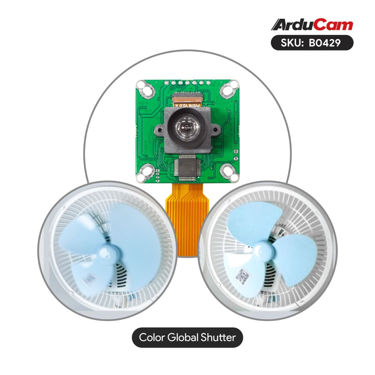 Arducam AR0234 Global Shutter Camera based on 1/2.6” 2.3MP AR0234 Color Image Sensor, this global shutter camera eliminates rolling shutter artifacts to better capture fast-moving objects. It can be used for dynamic capture of high-speed moving objects, real-time monitoring of factory machines, etc.
